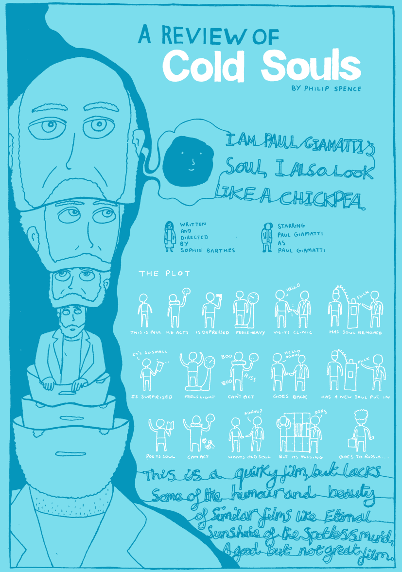 Here’s a piece I’ve done for Electric Sheep magazine. A comic review of the movie Cold Souls. Bit of a nice change from drawing bunnies and my usual comic book style. Click the image for a larger version on have a look at the original review on Electric Sheep.
